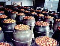 ③【破砕~発酵】 柿の実を砕きワインのように発酵させます。(約2ヶ月)